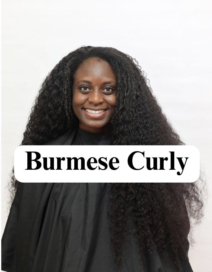 Exotic, bouncy curls with a soft, natural luster — our Burmese Curly Hair Extensions offer a luxurious blend of volume and definition. This texture is known for its lightweight feel, fluffy body, and ability to hold curls beautifully while still being easy to manage. Perfect for both everyday wear and statement looks. Model is wearing 3 bundles, 24”, installed using “Flip over Sew-in Method” Key Features: